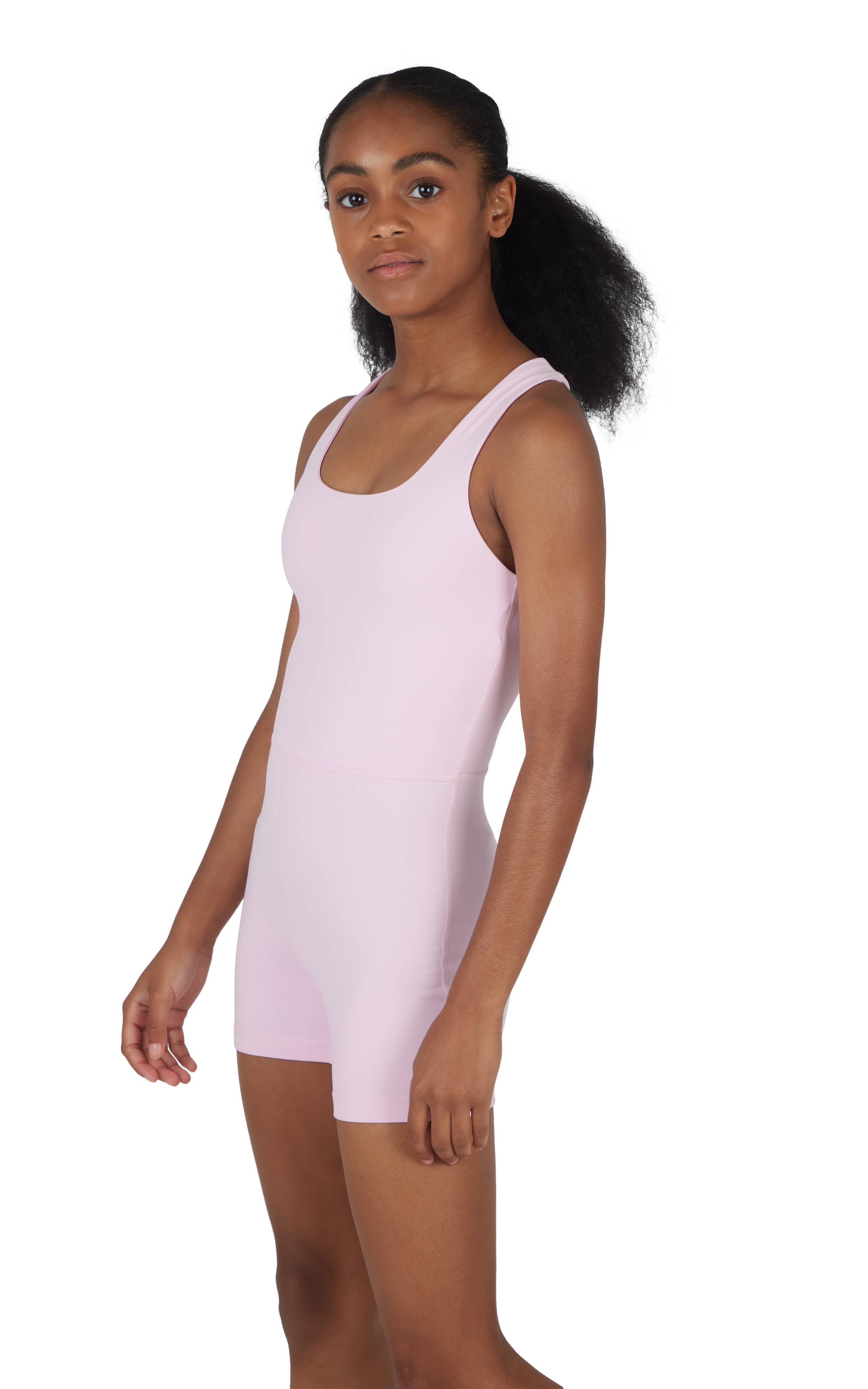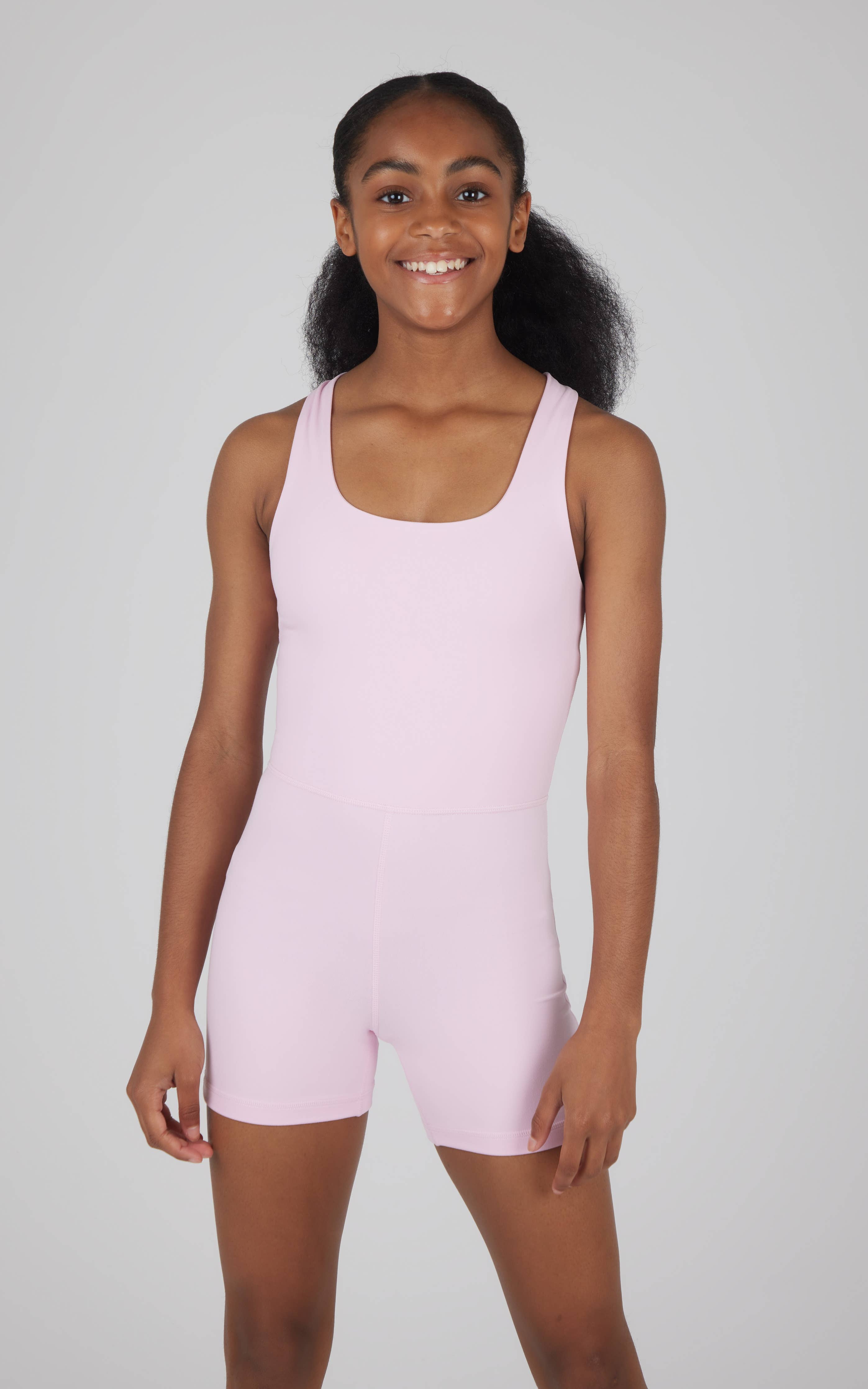 Girls Lux Core Criss Cross Back Romper - Criss Cross Detailed Back. Great for Dance class and all other outdoor activities