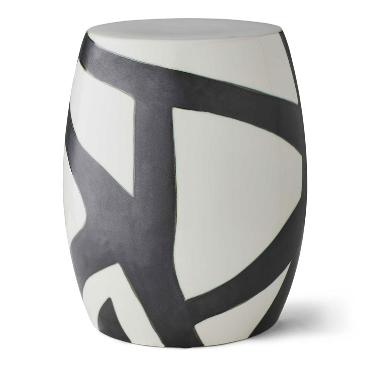 Made of ceramic, the Figurative Garden Stool decoration is reminiscent of abstract expressionist oil paintings in a striking gloss white and charcoal black. Functioning as the perfect drink table, it is also a beautiful artistic accent to complement your favorite chair. May be used outdoors, but protection from freezing temperatures is recommended.
