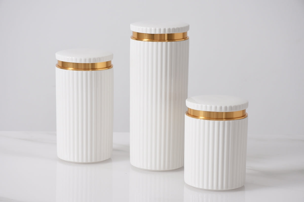 The combination of striking aluminum with high-fired porcelain create the Tall Canister – Large from our Tango Collection. Elevate your household and kitchen storage. The perfect neutral accent to any home. Hand-wash Only. Beautifully packed in a gift box.