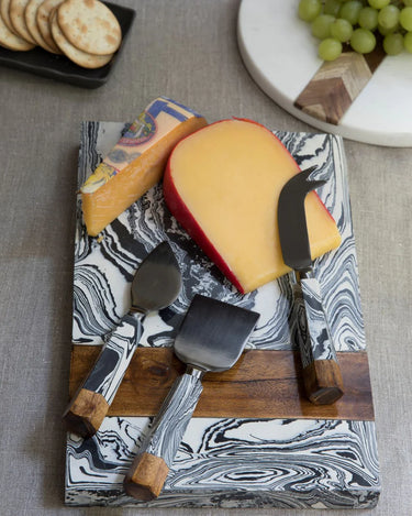 Wow your party guests by displaying beautiful cheese, cake and bread platters on our Zebra Marble & Wood Board, or have fun experimenting with use as a decorative addition to your home. Though a true multi-functional masterpiece on it’s own, this piece belongs to our extraordinary Zebra Marble collection. These untamed, natural stone beauties are both durable and memorable, each revealing their own variety of striations and veins in a variety of colors.