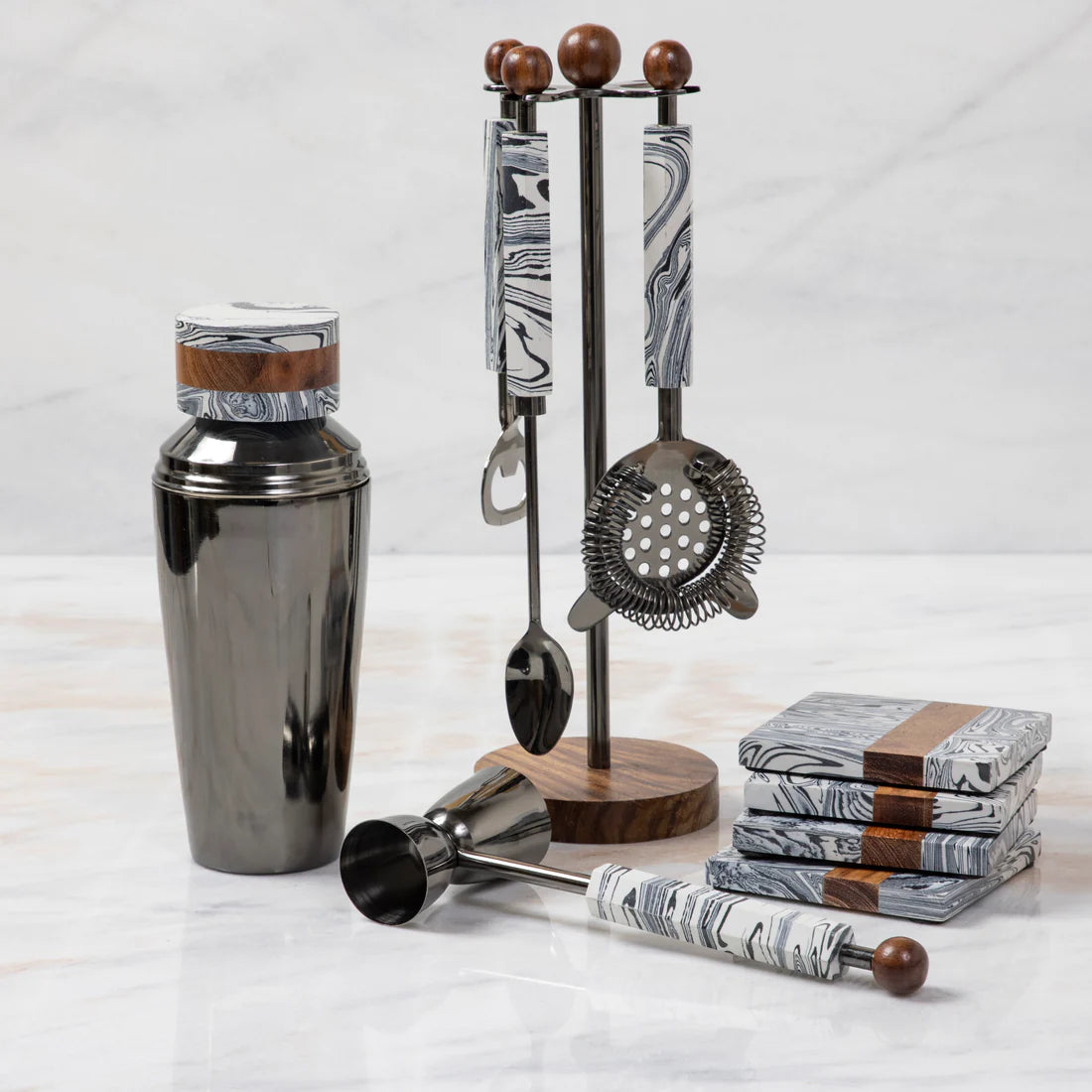ZEBRA MARBLE & WOOD ONYX COCKTAIL SHAKER